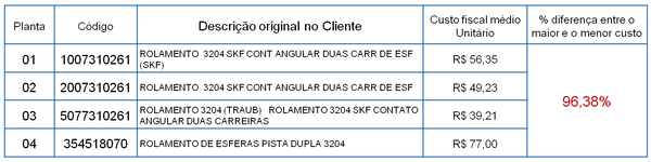 As Multiplicidades encontradas entre os itens padronizados são de aproximadamente 12% dos itens padronizados e a variação dos preços encontrados entre as aquisições das várias unidades da empresa nos permitem estimar um saving de 5,0 % a 9,0% nos valores com a aquisição destes itens.